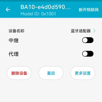 对于蓝牙适配器,不建议开启 “Relay” 和 “Proxy” 功能,蓝牙适配器是网络枢纽,数据收发量大,额外的 mesh 功能会降低数据吞吐量。